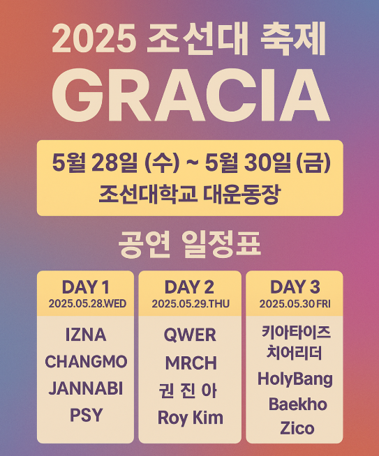 - 행사명: 2025 조선대학교 대동제 GRACIA